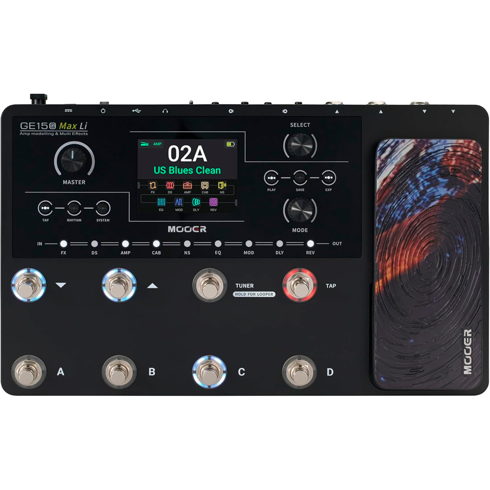 Pedaleira Mooer GE150 MAX Li - Multi-efeitos para Guitarra - Bateria de Lítio - 8 Footswitch